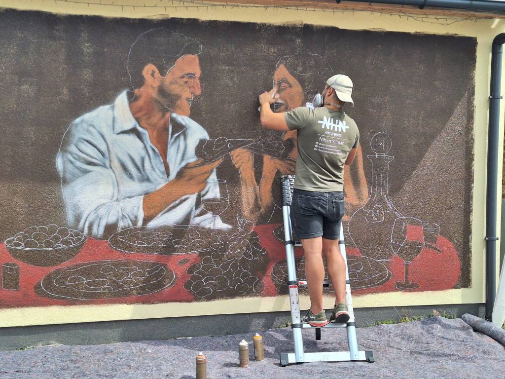 Afgelopen weken heeft Nihan Yilmaz hard gewerkt om op de muur van onze zaak dit prachtige kunstwerk te toveren! Mooie toevoeging aan onze zaak en voor de fietstoeristen in de buurt.